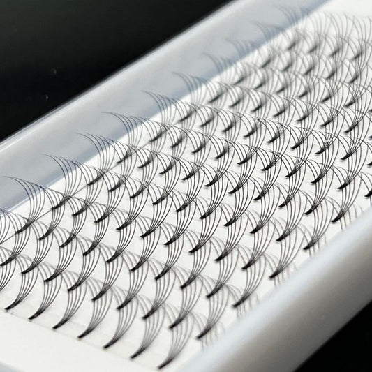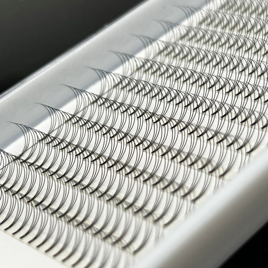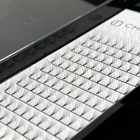 Contrairement aux boîtes de vrac (800-1000 fans) où le taux de perte est élevé (bouquets cassés, bases trop larges), les palettes Cha Beauty contiennent entre 132 en 320 bouquets de haute précision. Chaque bouquet est vérifié, symétrique et utilisable à 100%. Vous payez pour de la qualité posable, pas pour du déchet. De plus, nos bases fines (Heat Bonded) garantissent la santé du cil naturel de vos clientes.